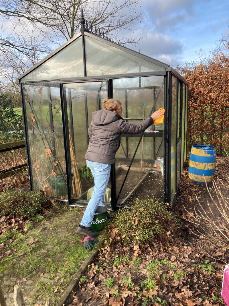 Na alle regen van de afgelopen tijd, snakken we naar een zonnetje. Bij de eerste zonnestralen begint het te kriebelen en ben ik enthousiast begonnen met het schoonmaken van de kas. Wat een algenaanslag zat er op de ruiten. In het najaar heb ik al knoflook geplant en die doen het echt goed. Binnen is de prei in het zaaibakje opgekomen en die staan nu ook in de kas. Ik kan niet wachten dat ik meer kan zaaien.