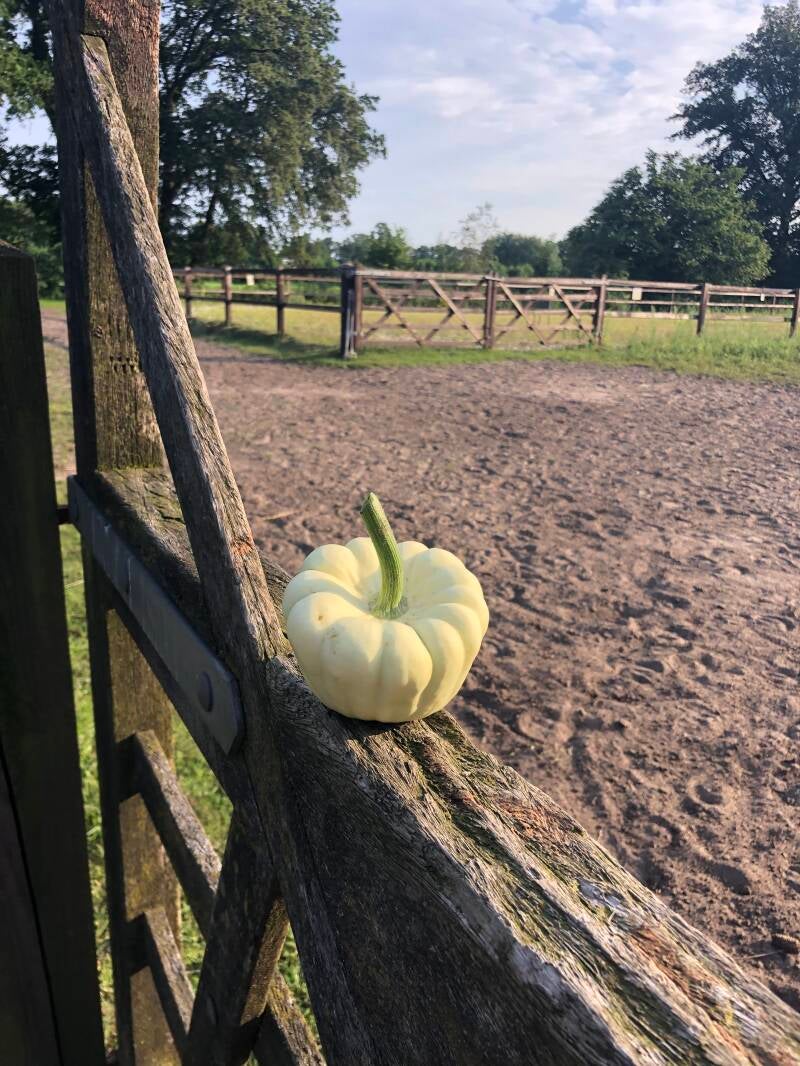 Op mijn courgette- en pompoenveldje vond ik een vreemde eend in de bijt, die ik echt zelf niet gezaaid had. Een patisson!
